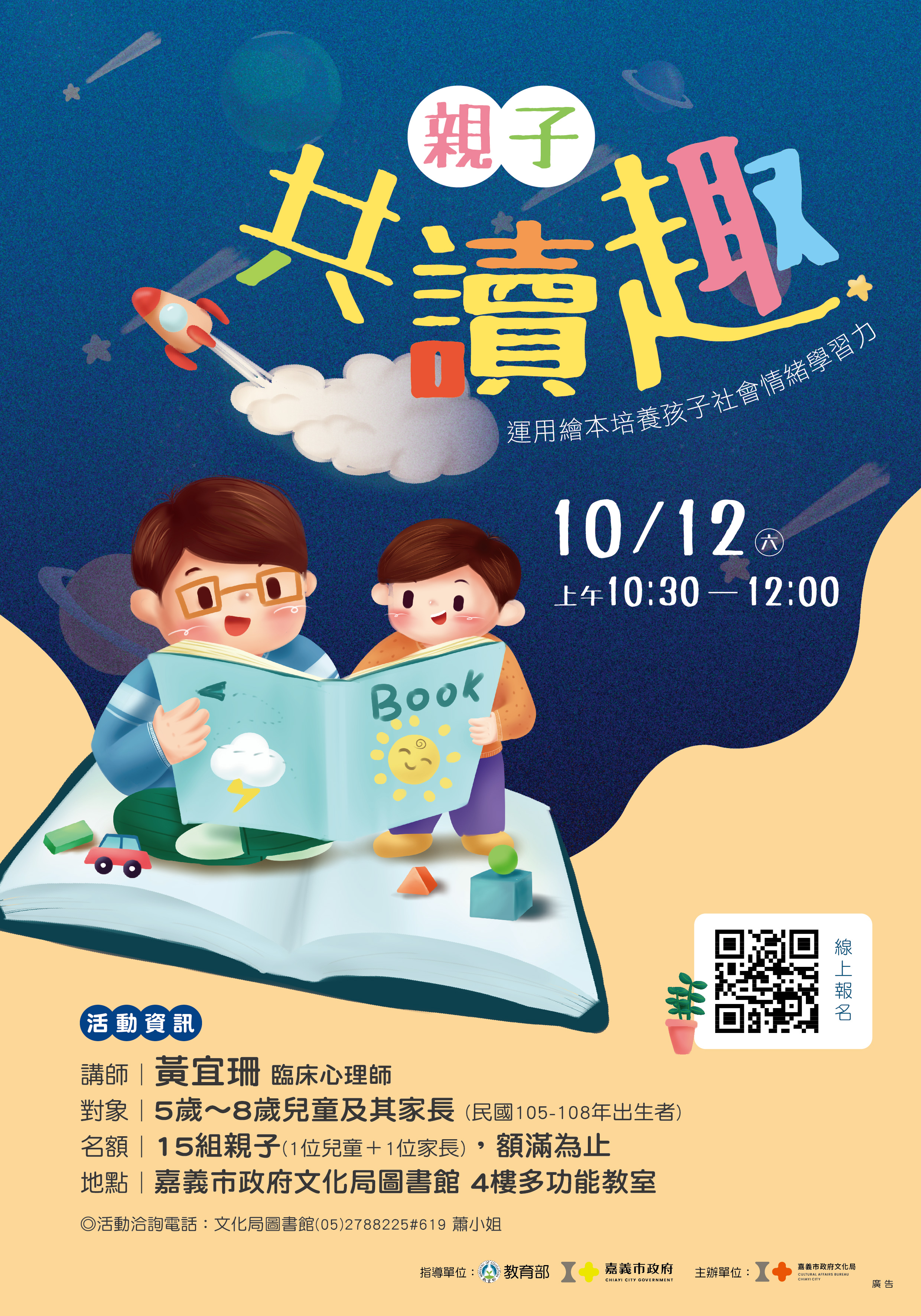 - 活動名稱:【親子共讀趣】運用繪本培養孩子社會情緒學習力 ▸10/12(六)10:30-12:00